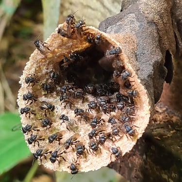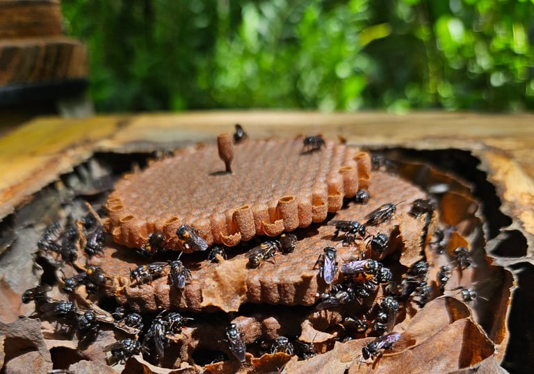 Trabalhamos com abelhas nativas sem ferrão para garantir a polinização eficaz de plantas e árvores nativas, para perpetuar as Florestas Brasileiras.