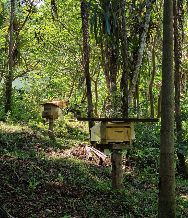 O manejo em consórcio de abelhas nativas e palmeiras e frutíferas da Floresta Atlântica.